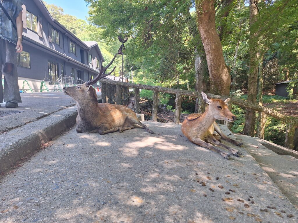 “Volgens de legendarische geschiedenis van het Kasuga-heiligdom arriveerde de god Takemikazuchi in Nara op een wit hert om de nieuw gebouwde hoofdstad Heijō-kyō te bewaken. Sindsdien worden de herten beschouwd als hemelse dieren, die de stad en het land beschermen.” Dit stukje van wikipedia krijgt een extra betekenis voor Nara, en de wilde herten die in Nara Park rond lopen zijn de mensen en het verkeer ondertussen gewend. Je kunt heel dichtbij komen en ze zelfs aaien. Ook zijn er op meerdere plekken senbei crackers te koop, die je aan de herten kunt voeren. Die vinden ze zo lekker, dat sommige herten het gedrag van de Japanners hebben overgenomen, waardoor ze naar mensen buigen om zo meer crackers te scoren!