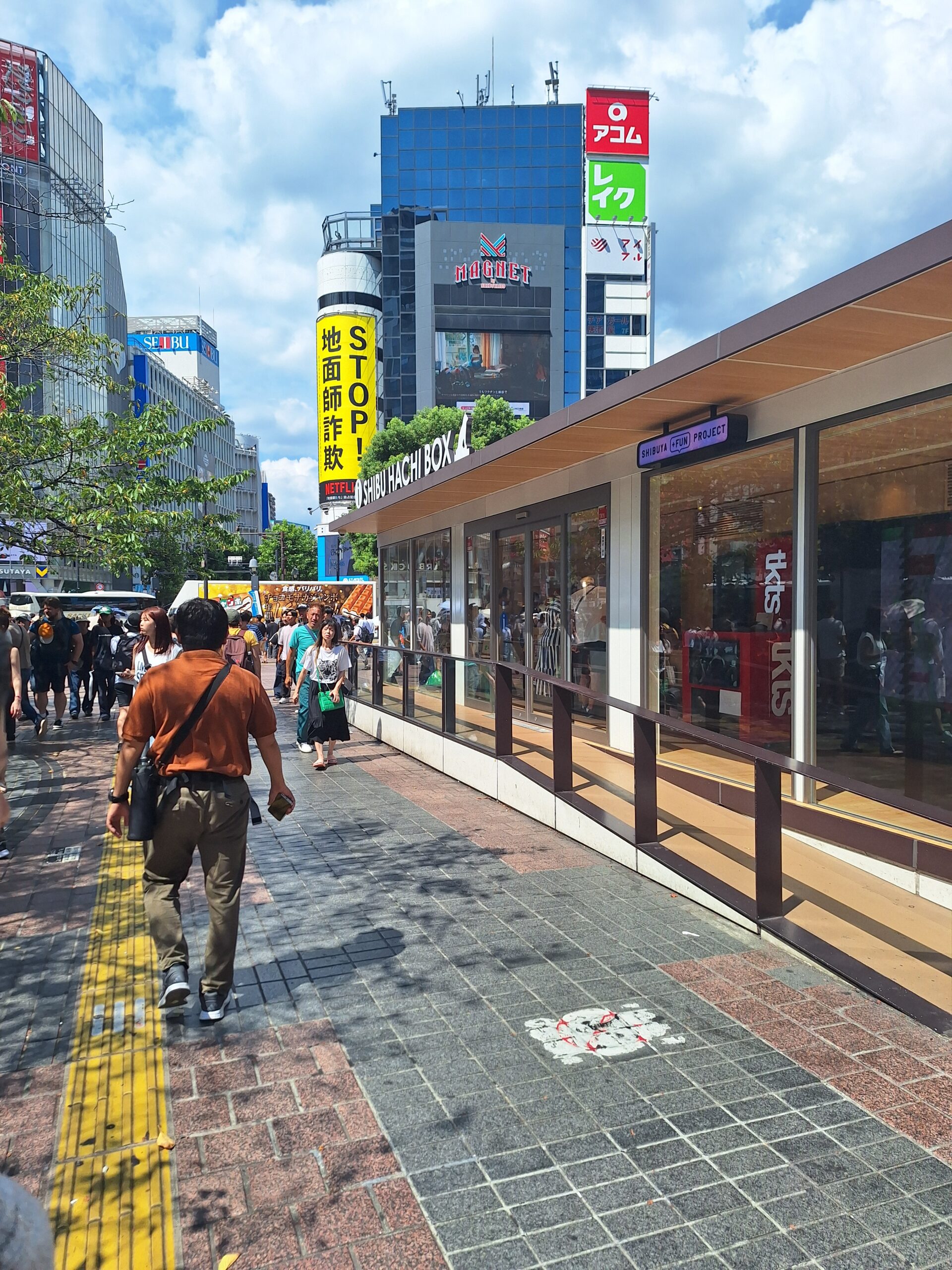 En toen kwam ik aan bij de eerste bestemming van mijn looptocht door de hoofdstad, namelijk Shibuya Scramble Crossing, het meest drukke zebrapad ter wereld, in hartje Shibuya (een aparte stad/district in Tokyo). Dit zebrapad is zo druk vanwege de grote bevolking van Shibuya en het feit dat het trein/metro station van Shibuya zich ook hier bevind (als ik de foto naar rechts kon draaien, zou je het station kunnen zien).